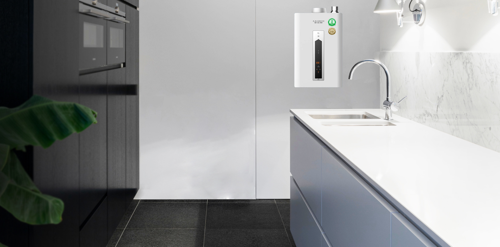 位于室外管道井內(nèi),巧妙利用空間,選用了A.O.史密斯EES-40B型落地式家庭中央熱水器新一代全產(chǎn)權、